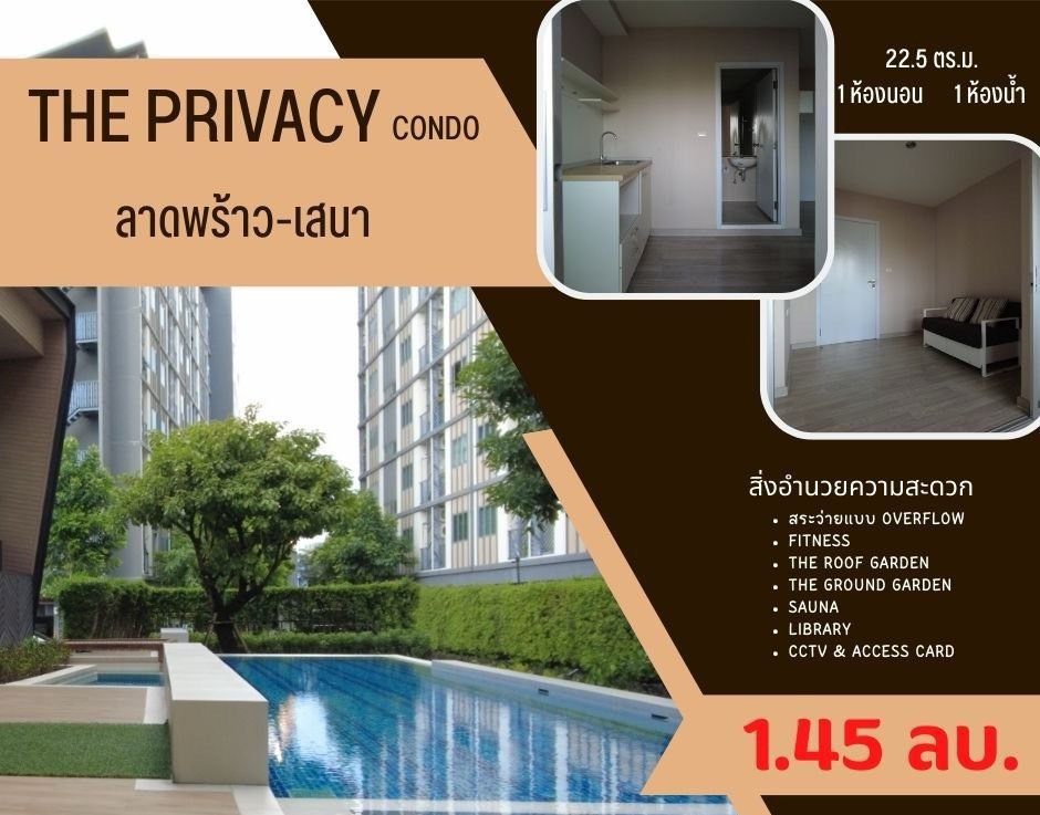 ขาย Privacy Condo ลาดพร้าว-เสนา อาคาร B ชั้น 3 แอร์+เฟอร์ ราคา 1.45 ล้าน
